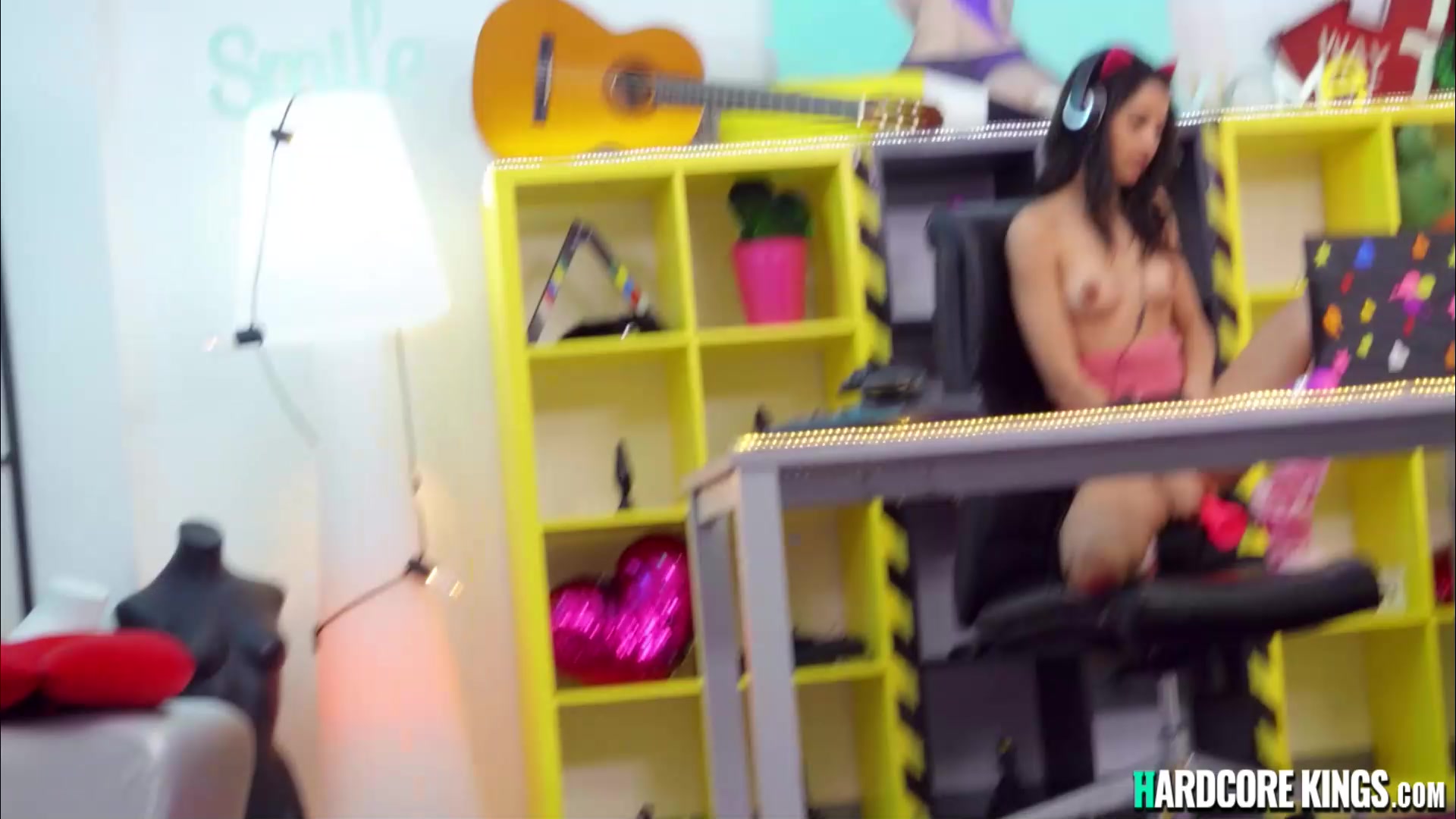 Neighbor spying hot brunette petite Latina teen Scarlet Rebel while she is masturbating and then giving her huge dick for blowjob and fuck POV