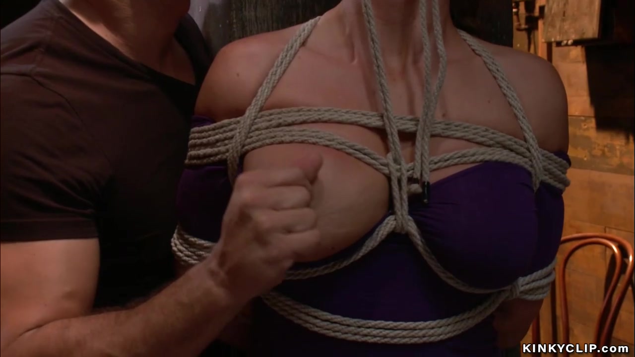 Bound busty blonde in purple dress Phoenix Marie is stripped by master Ramon Nomar then in various extreme position rough anal fucked