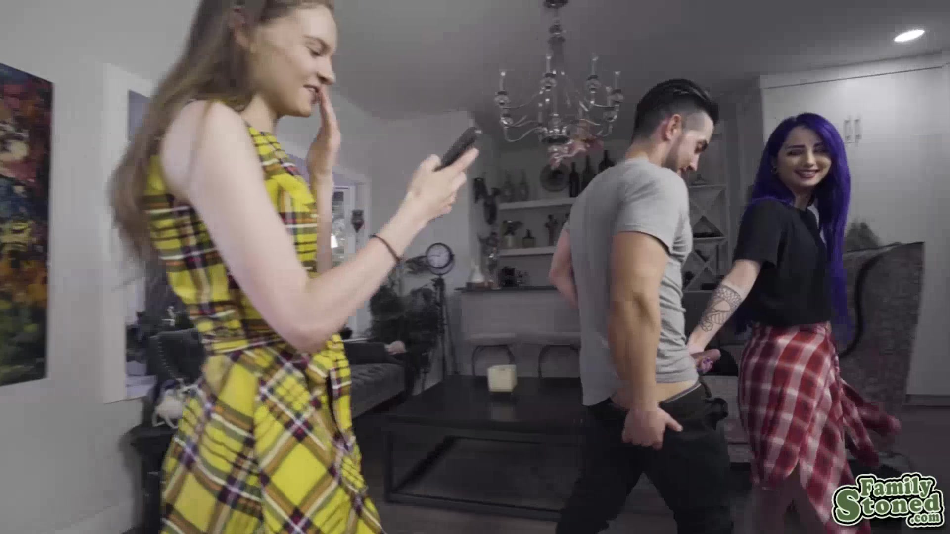Jessea Rosae is too addicted to her phone to pay any attention to Val and Eddie The stepsiblings put on a show in front of her making her stop using the phone and eventually joins the stepsiblings in their fun they had a threesome sex in the room
