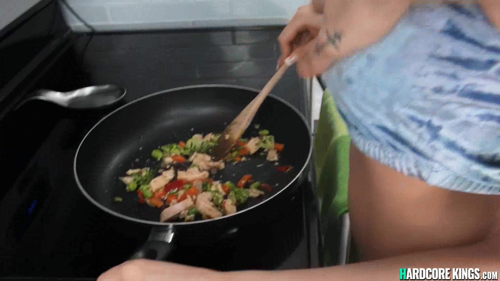 Natural big boobs brunette girlfriend Jessica Starling cooking in lacy panties and a velour bra when her bf Vitaly Vox suprising her and then fucking with huge dick POV