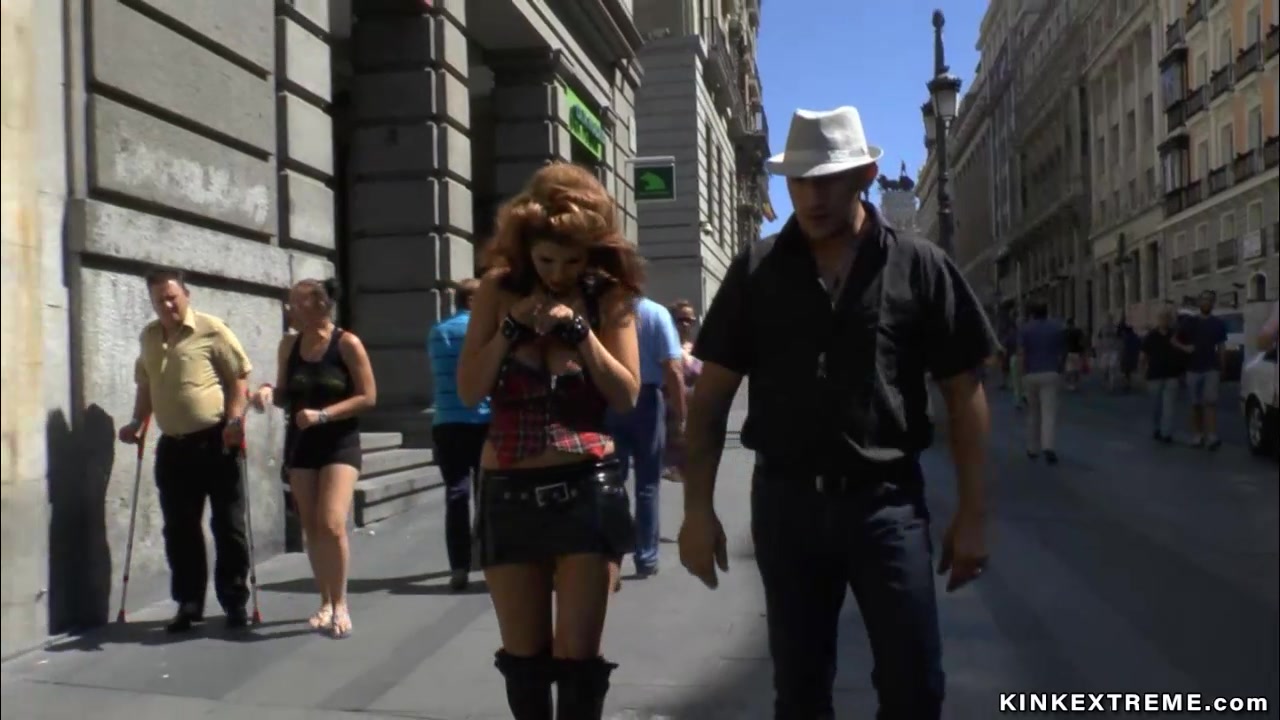 Omar Galanti public disgraced handcuffed brunette Euro slut Hanna Montada on the streets then brought her to Steve Holmes who fucked her in woods with big dick