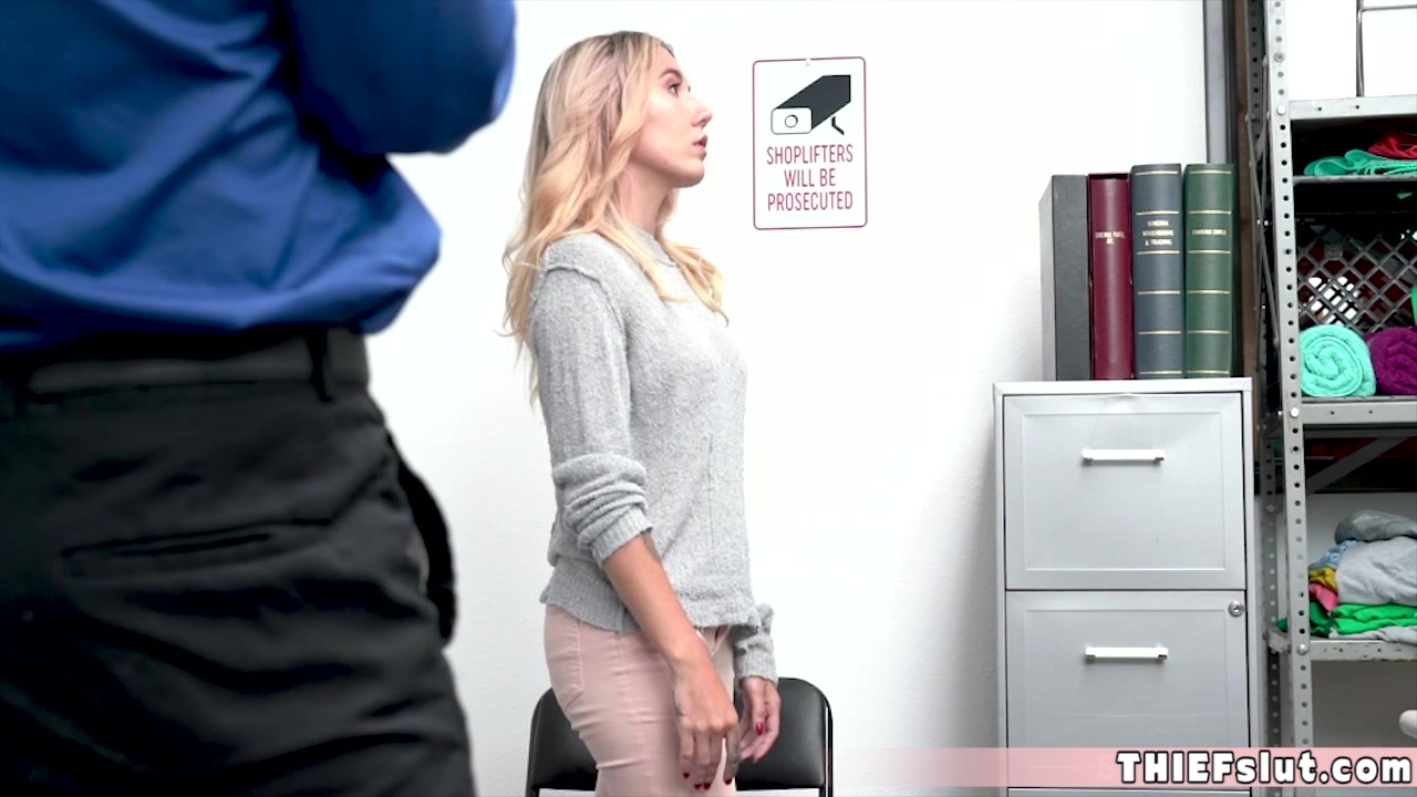 This cute blonde tourist just came from Paris and soon she was caught at a shoplifting attempt The mall cop decided to give that foreing teen pussy a good punding so she will learn the US way