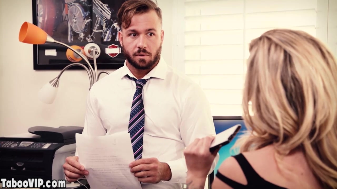 Naughty blonde teen stepdaughter with big boobs loves her stepdaughter who always works hard so one day she surprises him in his office and offers her tight pussy to him for a taboo fuck