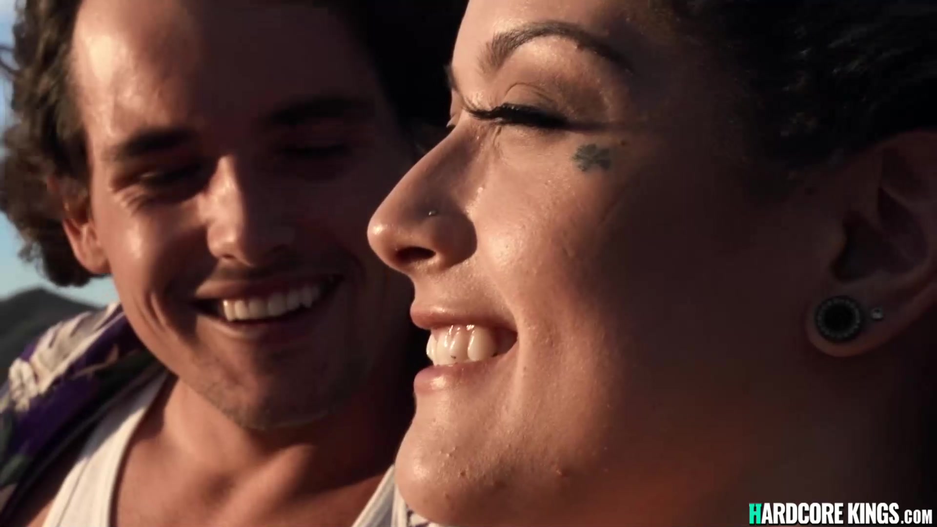 Two guys picked up hot brunette hitchhiker Katrina Jade in desert and they drove her in motel where one of them hard banged her to creampie
