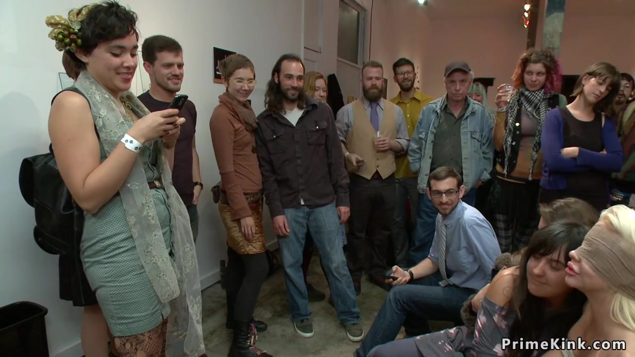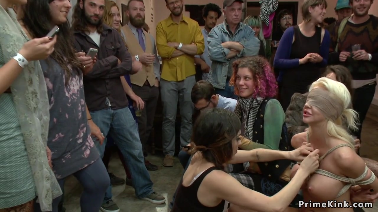 Mistress Princess Donna Dolore ties and blindfolds big boobs blonde slut Courtney Taylor in public then disgraces and gropes her with strangers and big cock Bill Bailey