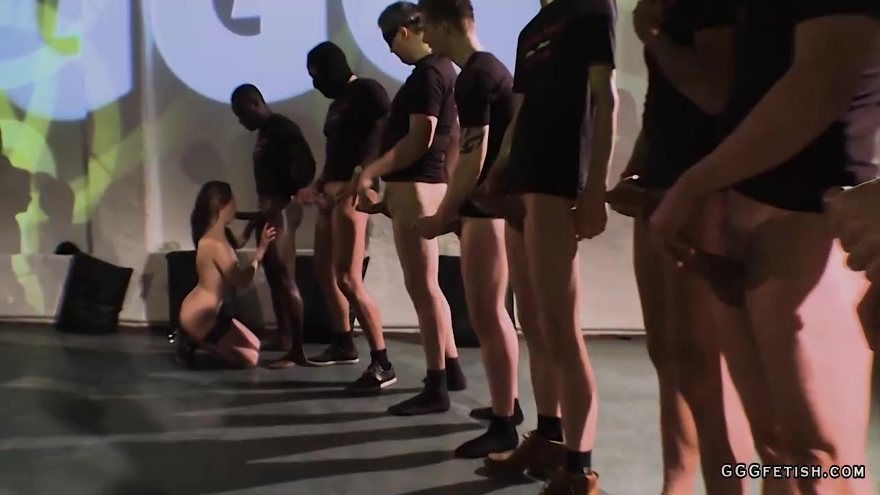 Dirty and horny redhead slut in black lingerie and stocking tina shows interracial gangbang actions with blowbang and oral blowjobs while she gets cumshots bukkakes and facials from hard dicks