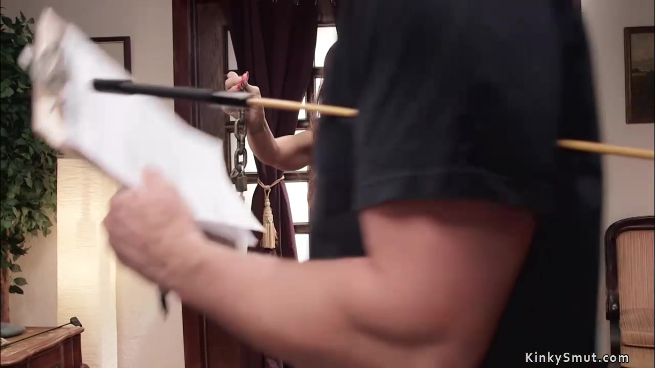 Bound huge boobs redhead MILF trainee Syren de Mer vibrates herself while master James Mogul whipping her then sucks and anal fucks big black cock Mickey Mod