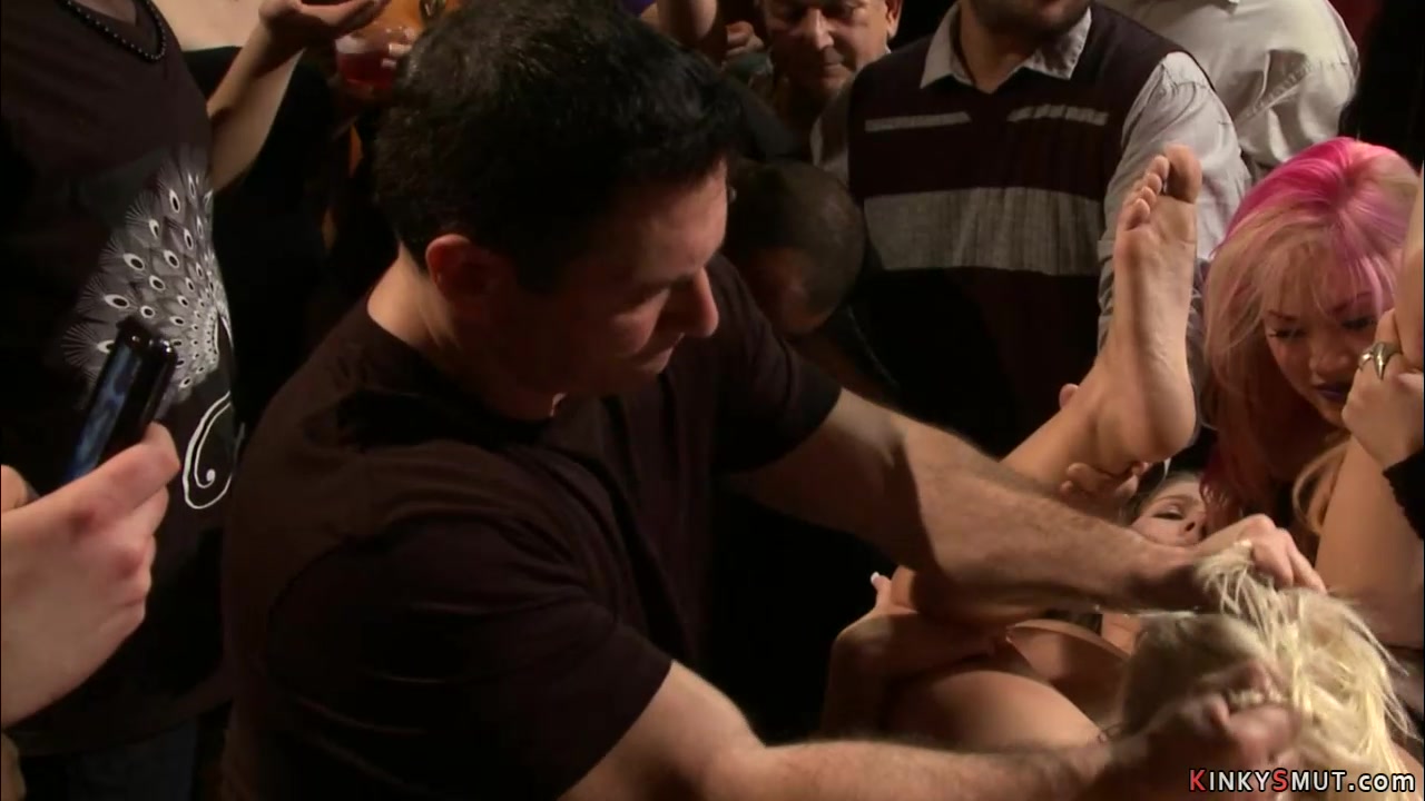 Huge tits Alex Chance and hot slut Alice Frost are bound and spanked and disgraced in public bar then rough fucked by big cock John Strong under control of Princess Donna Dolore