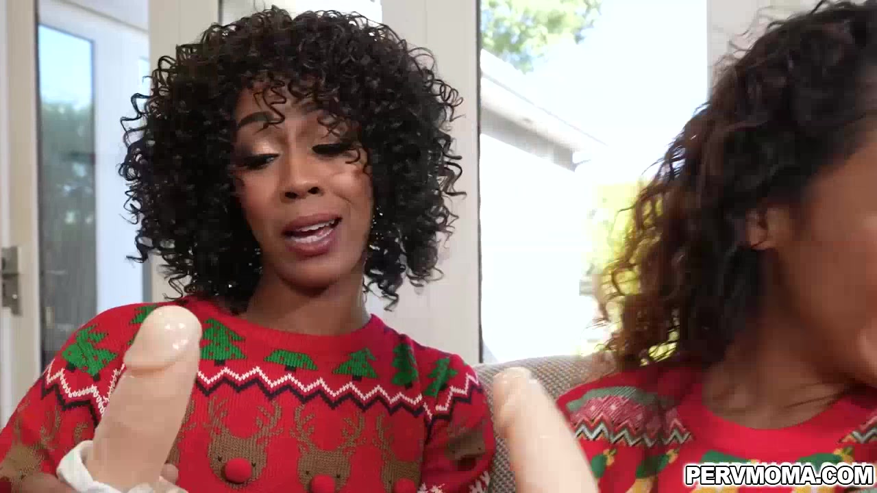 Alex welcomes stepsister Sarah and stepmom Misty as they visit him for the holidays. When Alex and Sarah catch Misty playing a dildo in her ass and pussy in the bathroom, they ask to join in, assuring her they’re a very open family. So the three of them get naked and enjoy fucking the holiday season