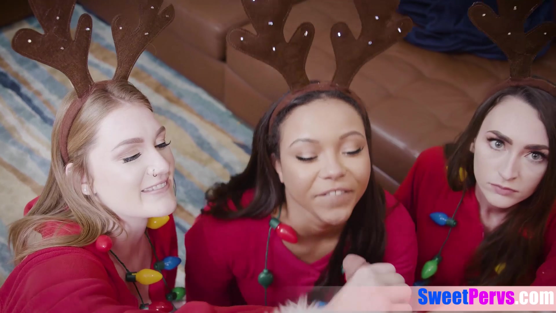 Latina teen Adriana Maya with big boobs and her bisexual BFFs Dani Damzel and Aria Kai want naughty presents so they catching the big cocked santa to suck and fuck his big cock during the busty sluts licking each others juicy pussies
