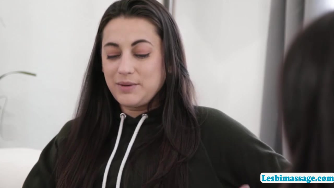 Busty brunette gives her bff a massage