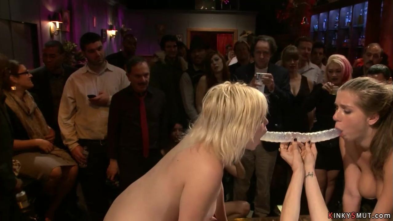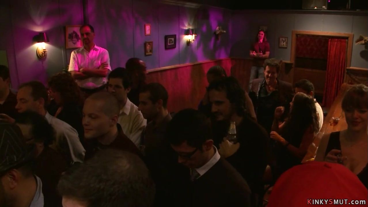 Busty slaves fucking in public bar