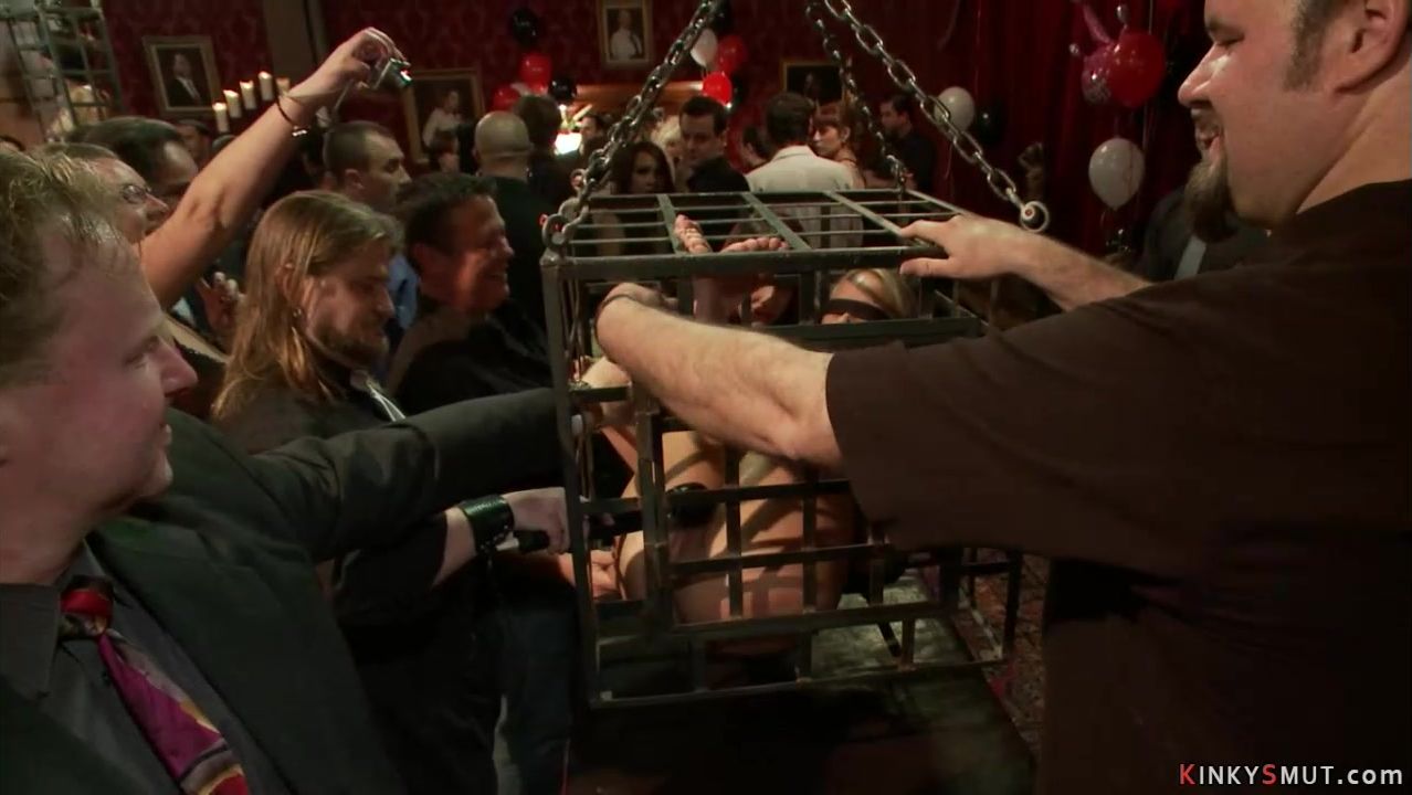 Two big boobs MILF slaves Simone Sonay and Syren de Mer at public Bday party of mistress Princess Donna Dolore get disgraced and throats banged