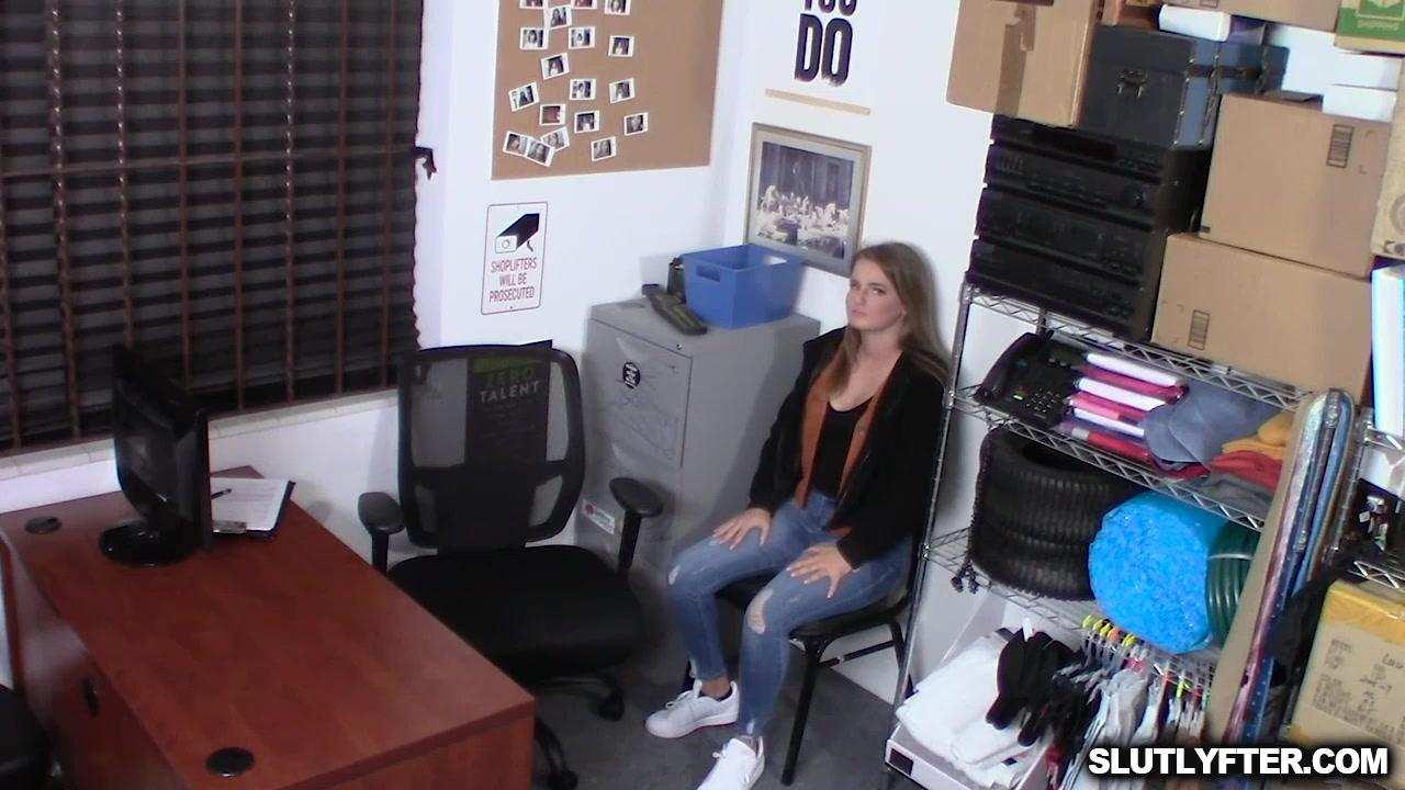Eliza Eves strips and goes down on her knees to suck the pervy officer She chokes as she gets face fucked Then she bends over the table and the stud start slamming her tight pussy from behind while he takes a picture of her big ass