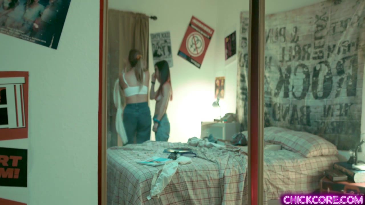 Nerd college teens Cadence Lux and Serena Blair are working with their 3D experiment and ended up with a wild lesbian 3some fuck session.