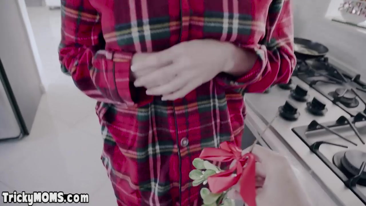 My glamorous blonde mature stepmother Cory Chase in glasses washing the dishes under the mistletoe so i want to kiss her but she asks me to lick her neglected hairy pussy