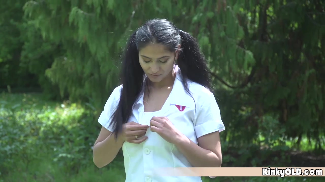 Gipsy teen nurse Ava Black with big natural boobs is a cock addict slut so one day she seduces and fucks her old patient in the garden First she lets him to fucked her tits than sucks his cock and in the end she offers her shaved pussy to fat grandpa
