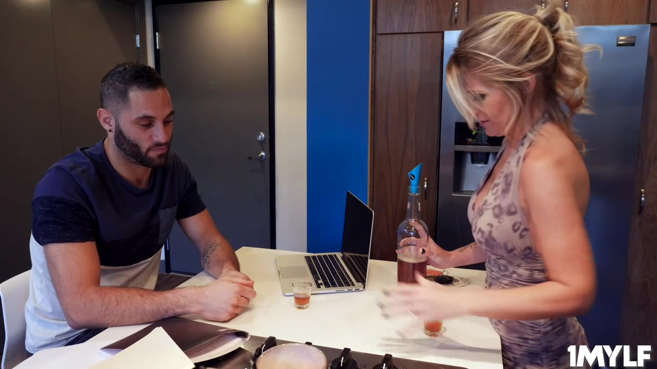 Prestyn asks stepson to party with her he tries to make the excuse that he has to study The only problem is that Prestyn will not take no for an answer She gets right in her stepsons face and lets loose She shoves his face right into her MILF tits
