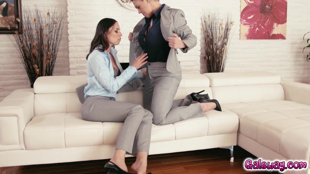 Dee help Aidra to achieve the successful look the company wants for her. After Aidra changes into the impressive suit and blouse, she's blown away by how confident she feels. One thing leads to another. They are both swept up in the heat as they strip away each others business suits