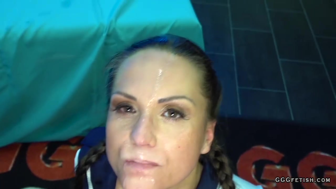Sexy and horny czech brunette in uniform with nice butt and body gets mouth fucking and cumshots with facials and bukkakes from german horny guys