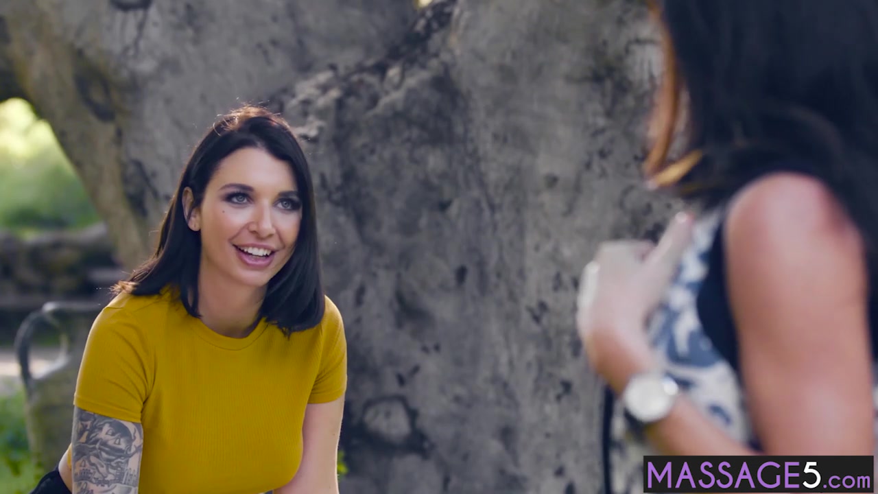 Tattooed MILF with perfect big tits Ivy Lebelle massage babes Silvia Saige body and fingering pussy outdoor Hot lesbians massage bodies before they became so horny and started to licking sweet pussies