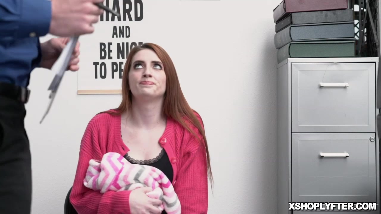 The LP Officer conducts a strip search to Aria Carson and found the stolen goods he makes a deal with her to avoid jailtime and she agreed and she stripped of her clothes and let the pervy Officer feast on their her tight pussy