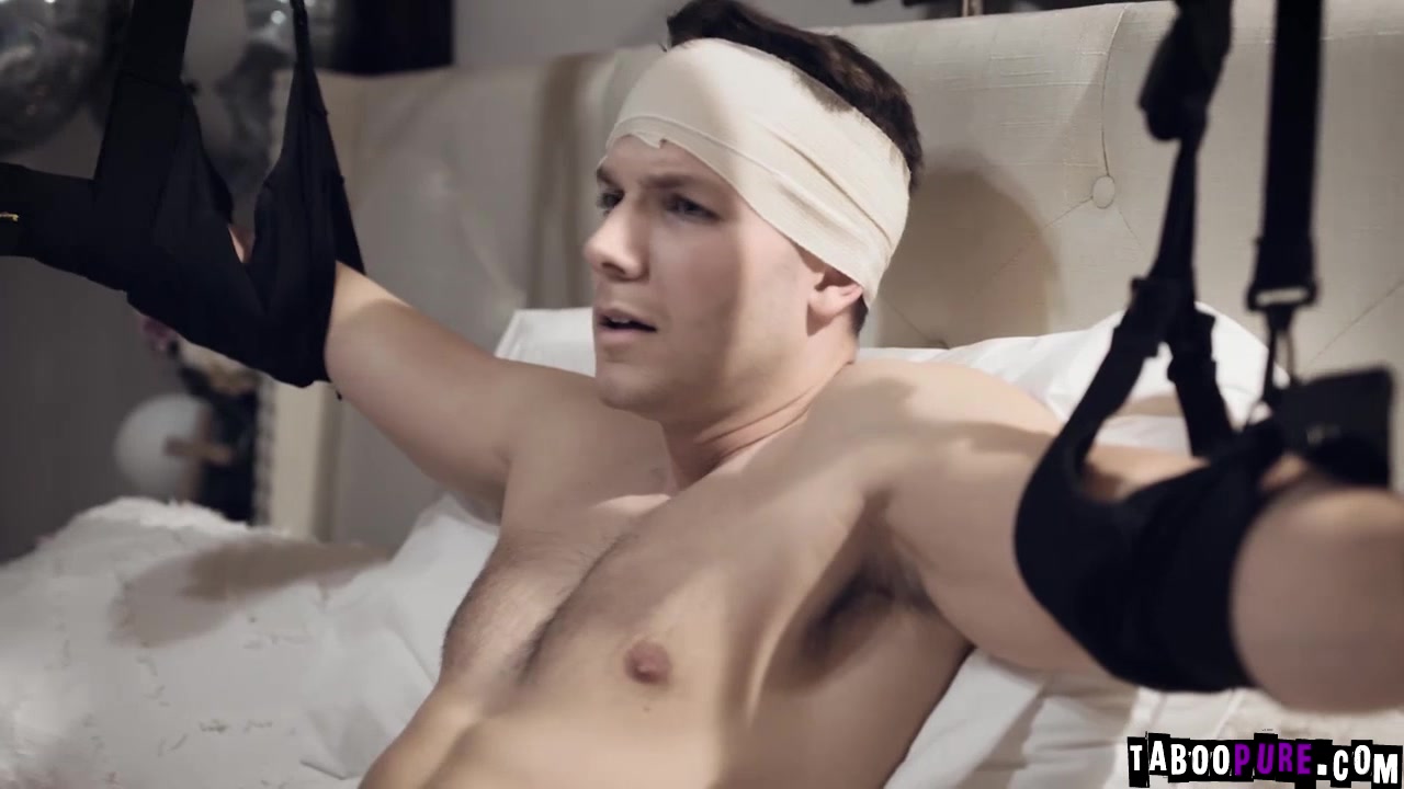 Kit can see the frustrations on Codeys face. He is trying to masturbate but he has to be careful moving his upper body. He tries to move his hands lower but it's clear he can't reach. Kit offers help and sexual release. He agrees. Kit slips her hand under the covers and begins to stroke his cock