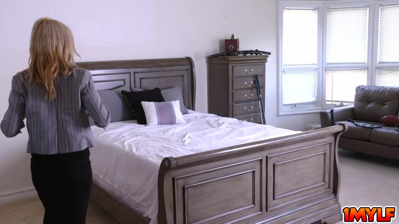 Tiffany Fox invites the young stud to penetrate her juicy MILF pussy and he obliges happily hopping on the bed and filling her up with his giant dick Her face scrunches up in pleasure as he plows her and she spasms on his rod orgasmically