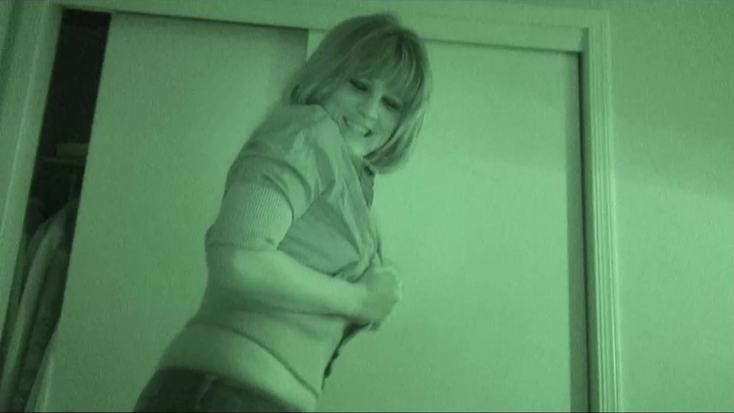 Blondie makes a strip show. Foxy blonde babe exposes nice natural tits