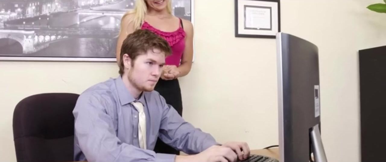 Secretary fucks for a raise. Busty blonde pussyfucked by the boss in the office