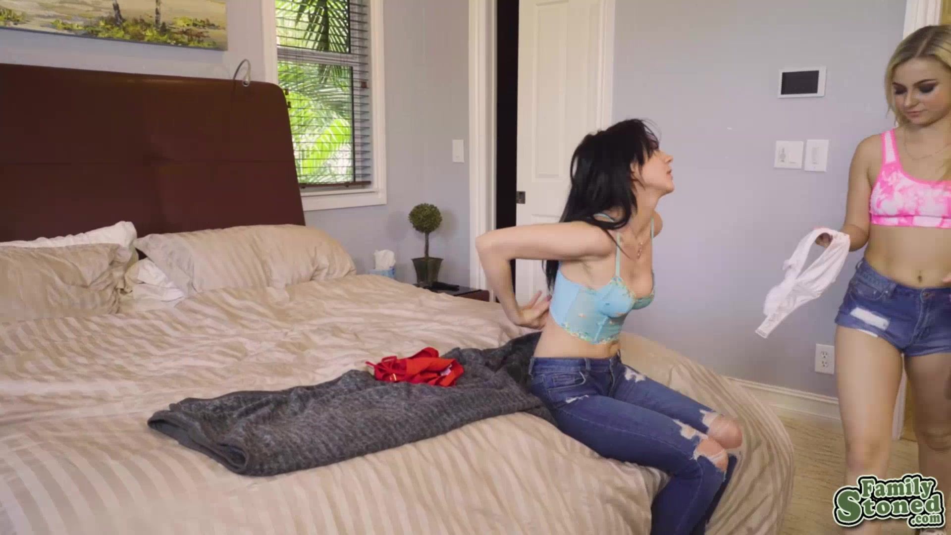 When sexy babes Aria Banks and Riley Jean rip each others bathing suits off in a jealous rage their step uncle just cannot resist their hotness and soon inside the house he starts pummeling their pussies until they begs for more of it