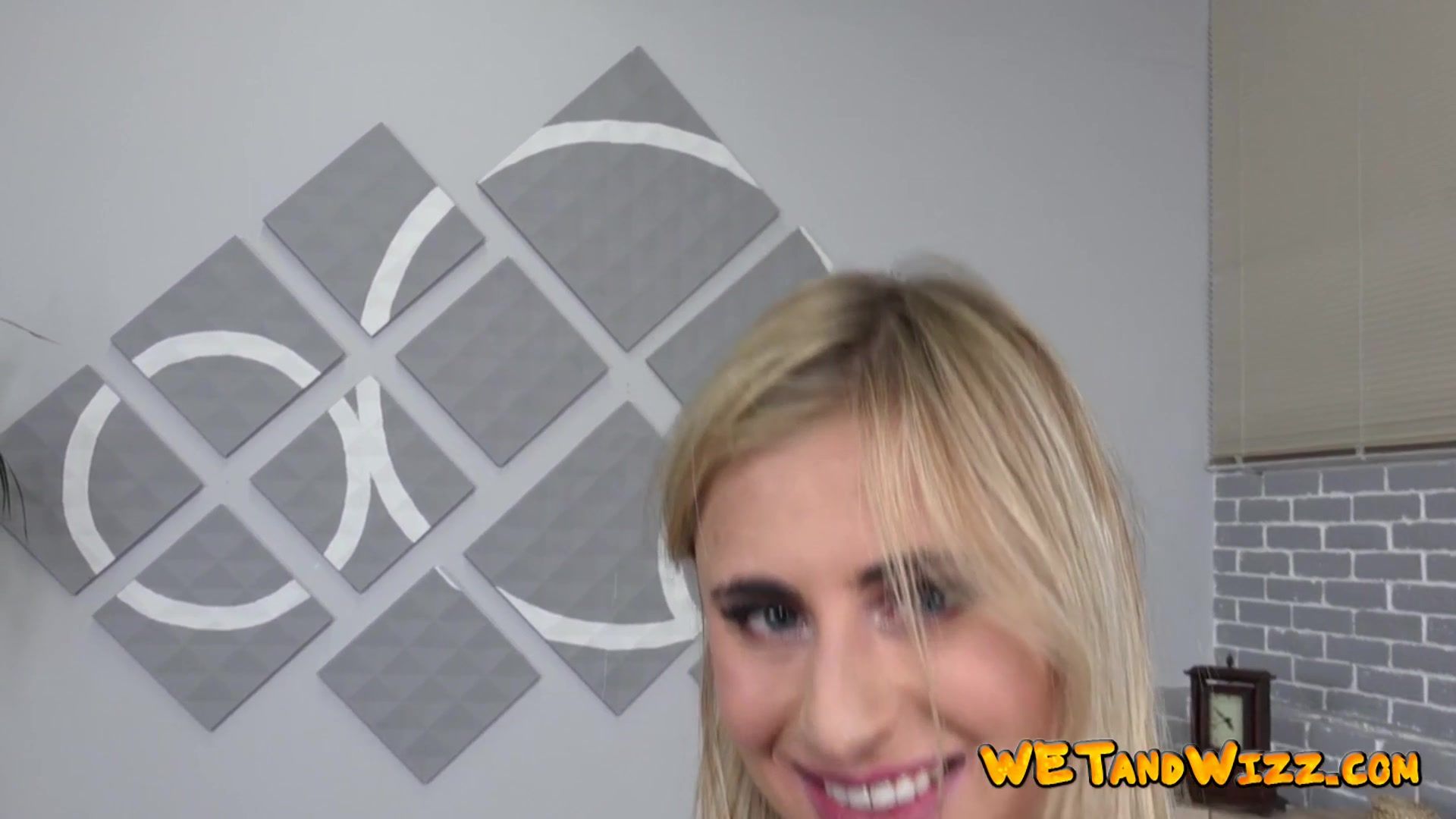 Description: Blondie playing with her own piss