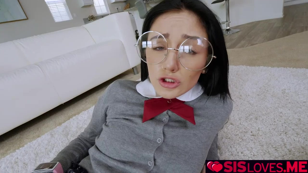 Nerdy Rosalyn Sphinx always wants to get to class on time but today her annoying stepbrother trips her on the way to school He gets a glimpse of her panties and soon her juices are flowing She rubs her muff and lets him slip a finger inside