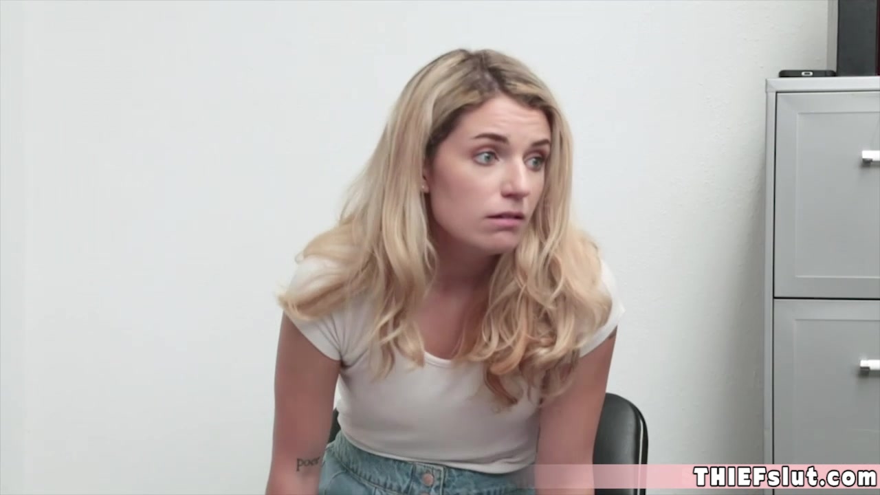 Cute blonde thief chick Abby Adams fucked hard from behind by a horny security guard who caught her at the store while she was trying to lift some plushies