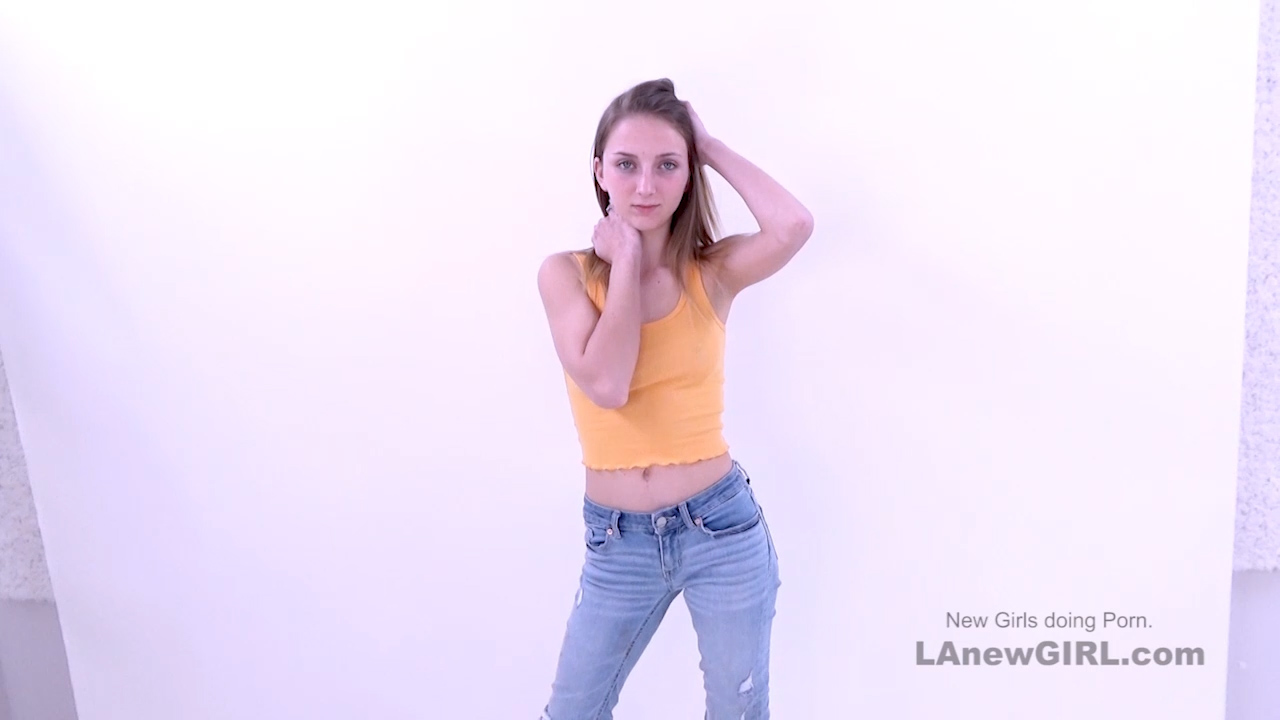 We welcome this week a sweet blonde with green in her eyes looking super cute in her yellow top through which you can see her nipples