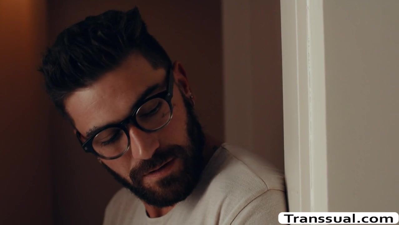 Gorgeous and hot busty Shemale babe Sofia masturbates in the bathroom, her mans bestfriend sees her and joins her. The dude first wanks her dick until she finds him and invites him for some blowjob and anal fun.