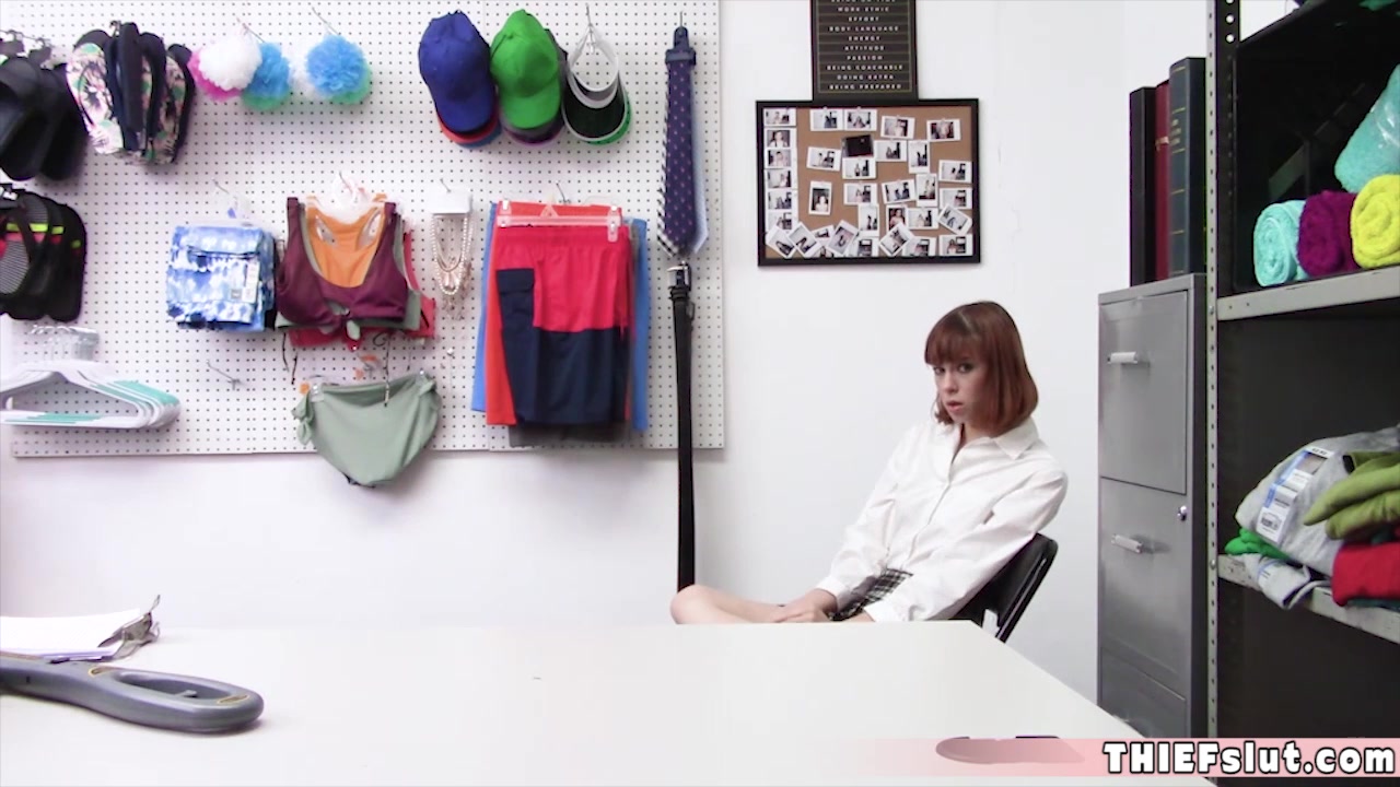 Skinny redhead shoplifter teen Alexa Nova gets rough fucked from behind after a horny strip search The horny security guard having too much fun with her