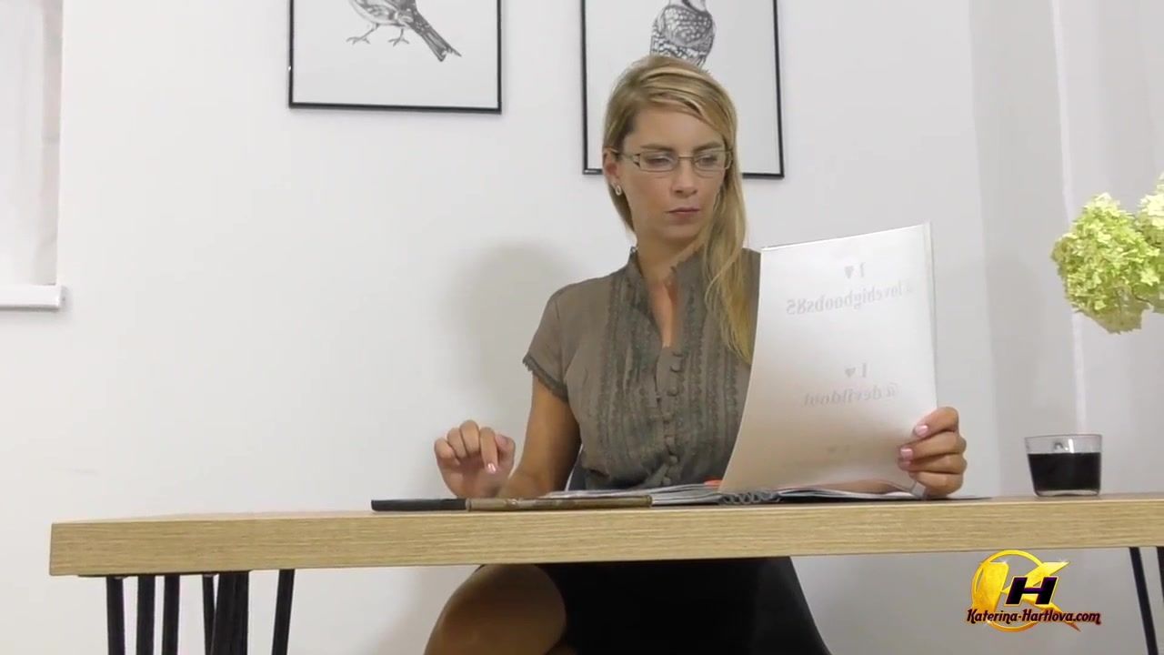 Busty Katerina Hartlova in Office Glasses Pantyhose and HighHeels