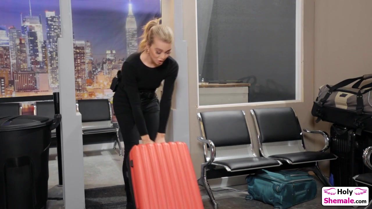 Busty ts Daisy Taylor does everything to get frisked by the hot shemale airport security Emma Rose.The big tits tgirl sucks the small tits trans cock and gets a blowjob from her.The petite blonde agent anal barebacks the horny brunette tranny