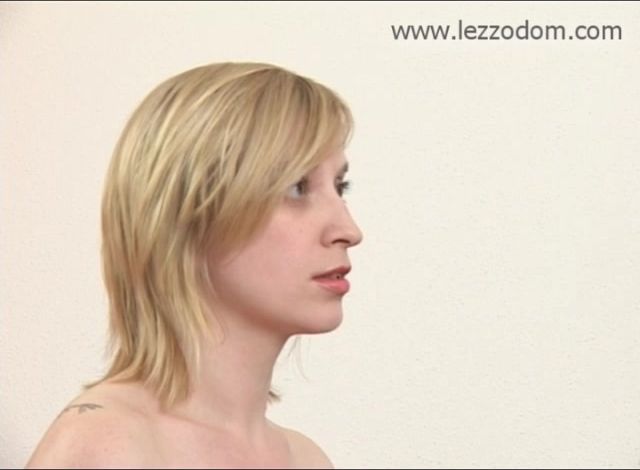 Naked and collared lesbian licking lovely looking shaved pussy of her hot blonde Mistress for earning brutal strapon session