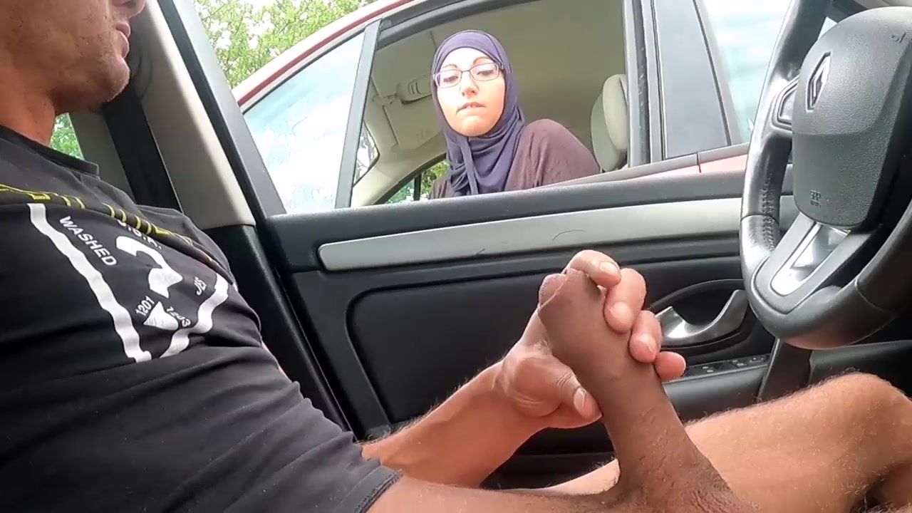 I take out my cock on a motorway rest area, this Muslim girl is shocked !!!