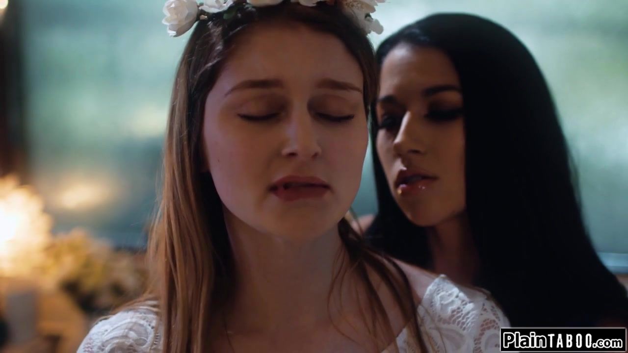 Busty bride convinced to show her true self and run away from the strict community by her former bff.They kiss and she gets her big boobs sucked.The big tits blonde licks her besties pussy and she then facesits the small tits brunette to get oral