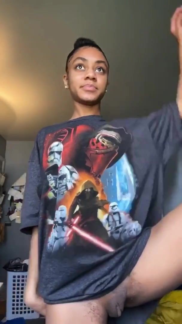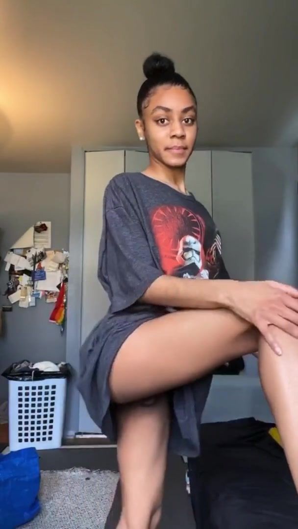 Ebony vouyer tries not to get caught around house