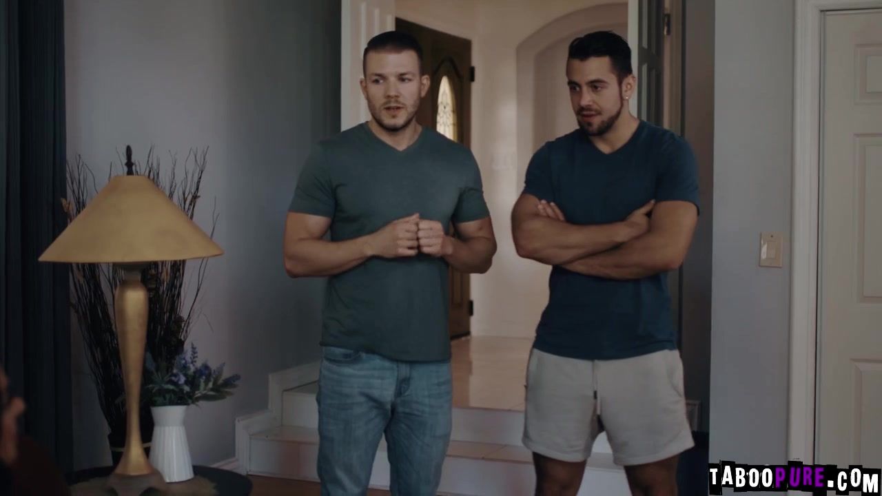 Sharon is relaxing in the living room when Dave and Paul walk in Sharon can see that they obviously have something to say until they ask to have a threesome with them Sharons sexual appetite ultimately wins out over any misgivings she has