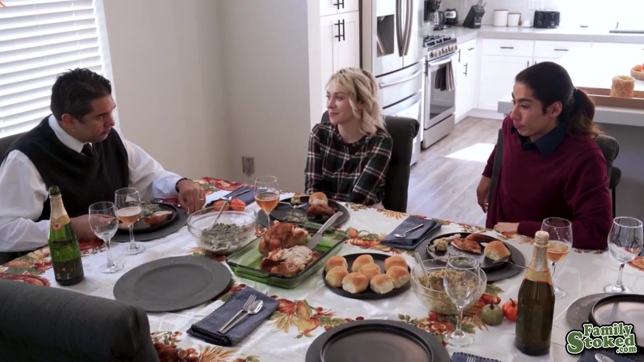 Maximus sits on the table for Thanksgiving dinner with his stepson David Lee and stepdaughter Ava Sinclaire, he notices how much they tease each other, so he decides to intervene. Maximus orders Ava to take care of her stepbrothers boner, that way she won’t have any reason to make fun of him anymore