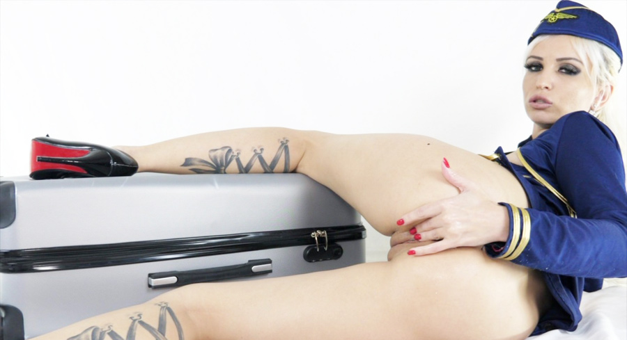 Tattooed babe in uniform KsuColt caressing her ass and slowly fingers her asshole and inserts her fist. She then grabs a huge blue dildo and fuck her asshole with it. Watch her butthole gape.