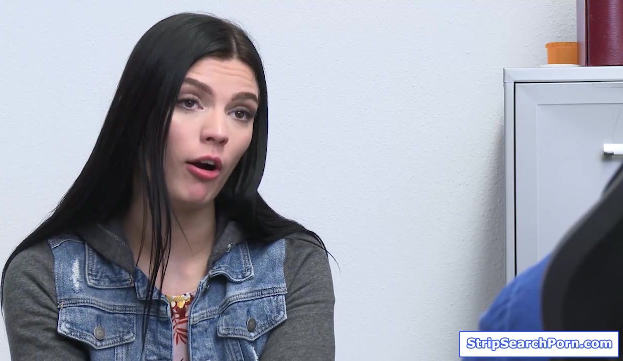 The security guard catches the store owners teen stepdaughter stealing.He takes her to his officer then conducts strip search.Afraid of her stepdad,the teen cooperates and gives what the officer wants.She blowjobs his big cock then lets him fuck her.