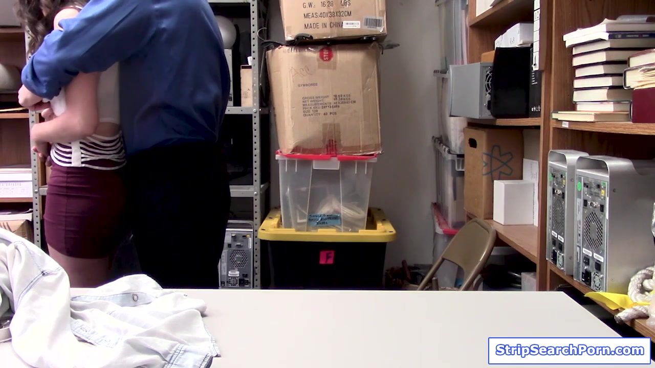 A brunette teen gets caught stealing not from the store but other customers phone.The security guard gets fingers her after a stripsearch.He makes her blowjob his big cock, then fucks her hairy pussy and anals her before erasing the records.