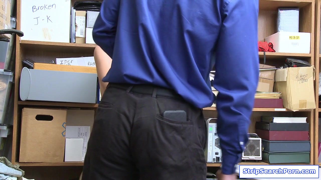 A brunette teen denies that she stole an item but the security guard caught her.The item was recovered after strip search.Then she cooperates,does what he wants to avoid jail.The small tits babe blowjobs him then lets him fuck her on his office table