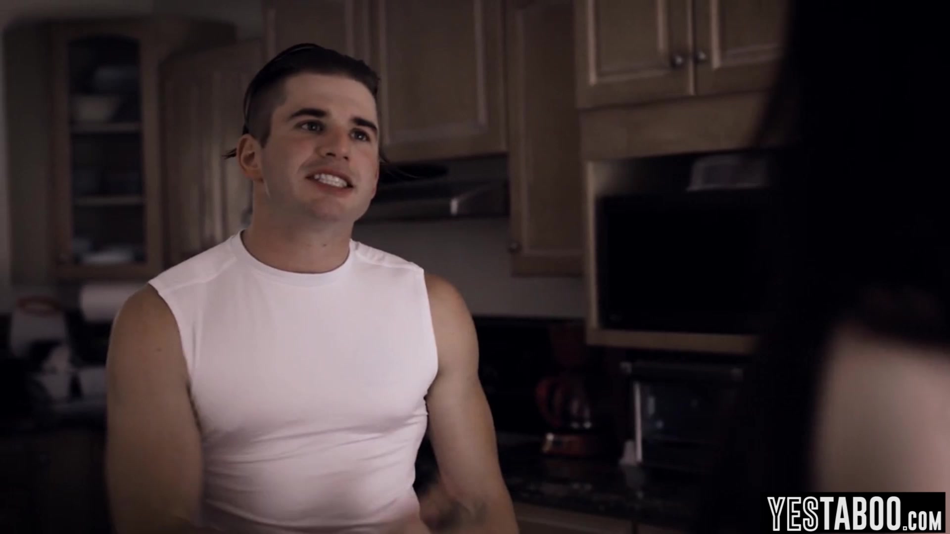 Chanel Preston is seated alone at a dining table looking very distracted and satisfied Her stepson joins her not knowing that his stepsister is under the table eating Chanel out He jokes about him being Stepmas favorite Then things got out of hand quick